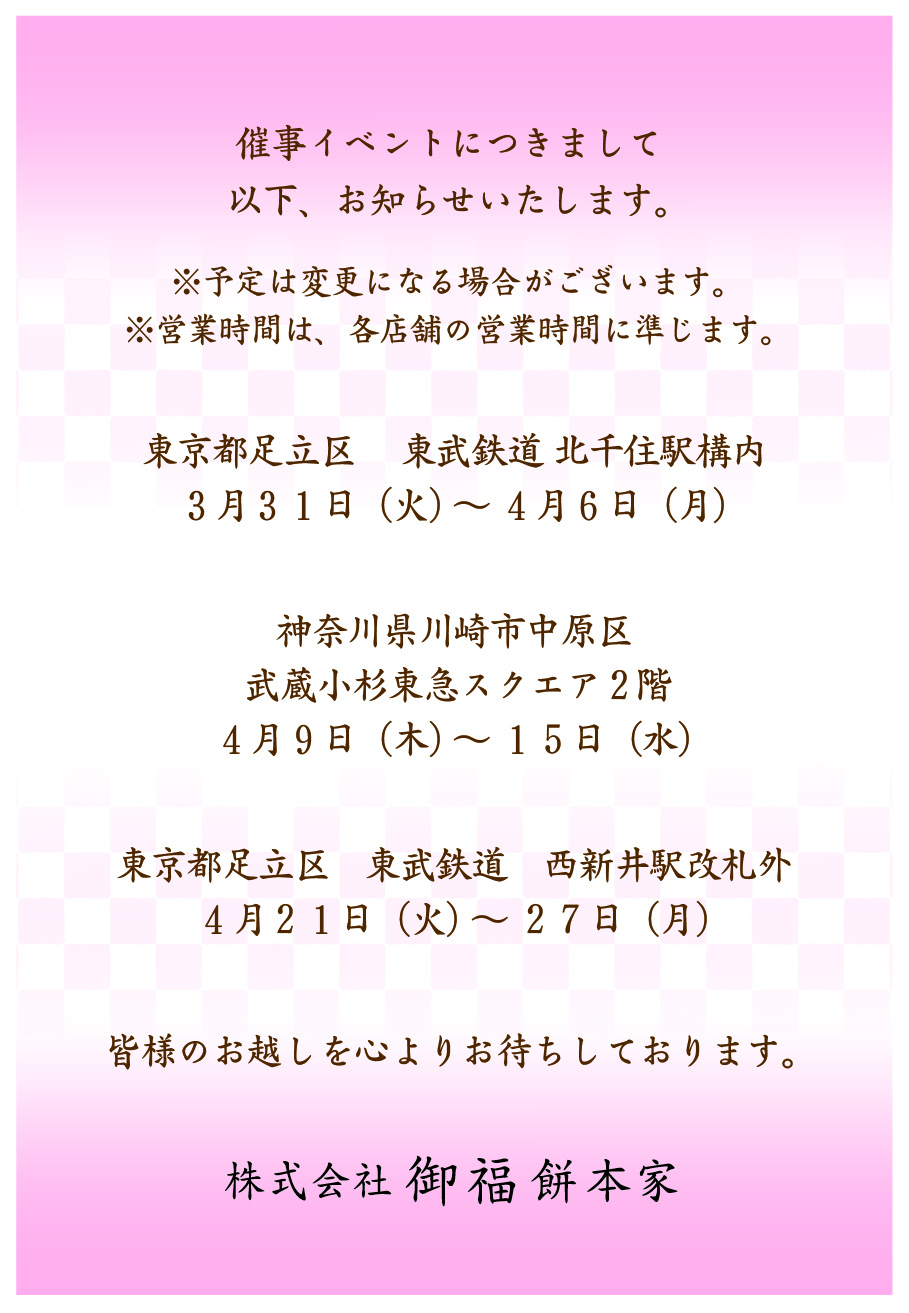 【4月 催事イベント情報 お福餅・包み餅】